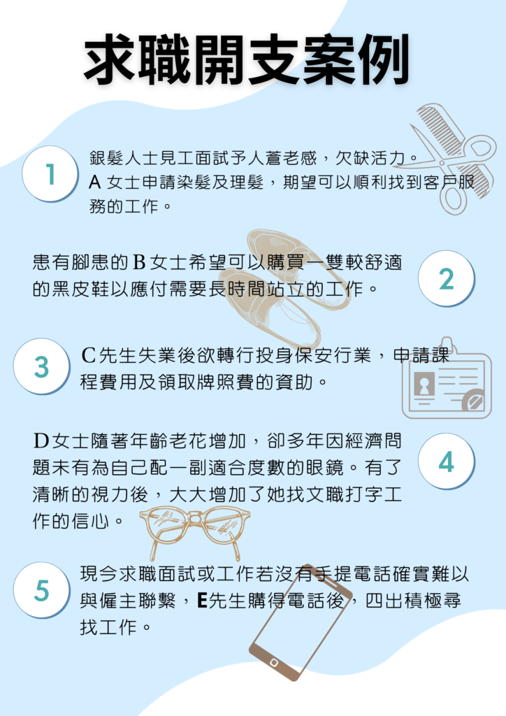 鑽出耆職延展計劃「臨時求職經濟援助」在2024年6月份再次接受申請,資助失業或開工不足的中高齡人士在求職上的開支,紓緩他們的經濟困難。合資格申請者會獲批不多於1,000港元的限額,用作應付求職上的開支,並以實報實銷方式申領。