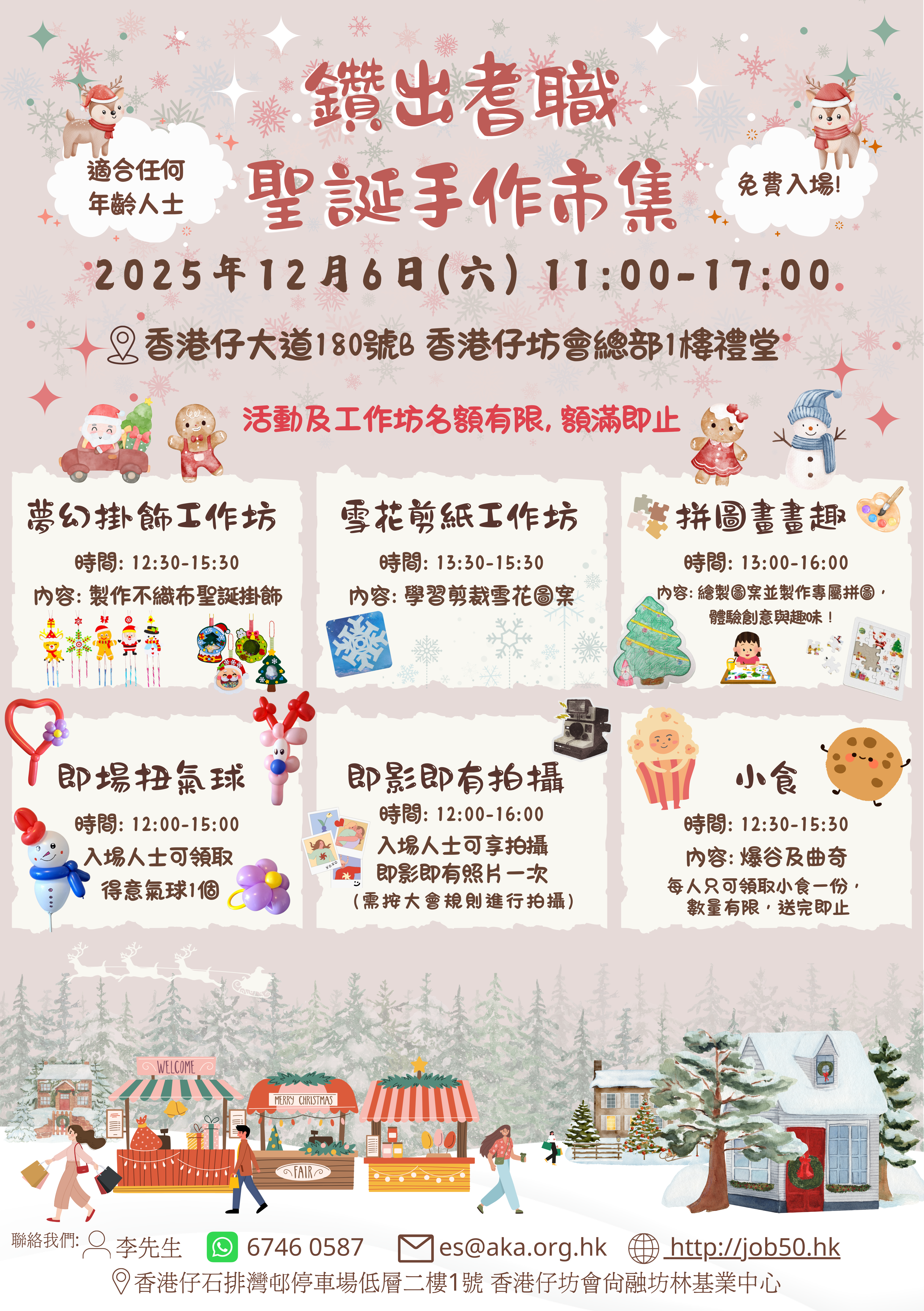 鑽出耆職聖誕手作市集 aka_admin 129 aka_admin 鑽出耆職聖誕手作市集 4 12 月, 2025 aka_admin IT諮詢服務 30 9 月, 2024 aka_admin 臨時求職經濟援助 4 6 月, 2024 aka_admin 「鑽出耆職延展計劃」會員續會事宜 2 4 月, 2024 aka_admin 鑽出耆職延展計劃 通訊6 4 8 月, 2021 aka_admin