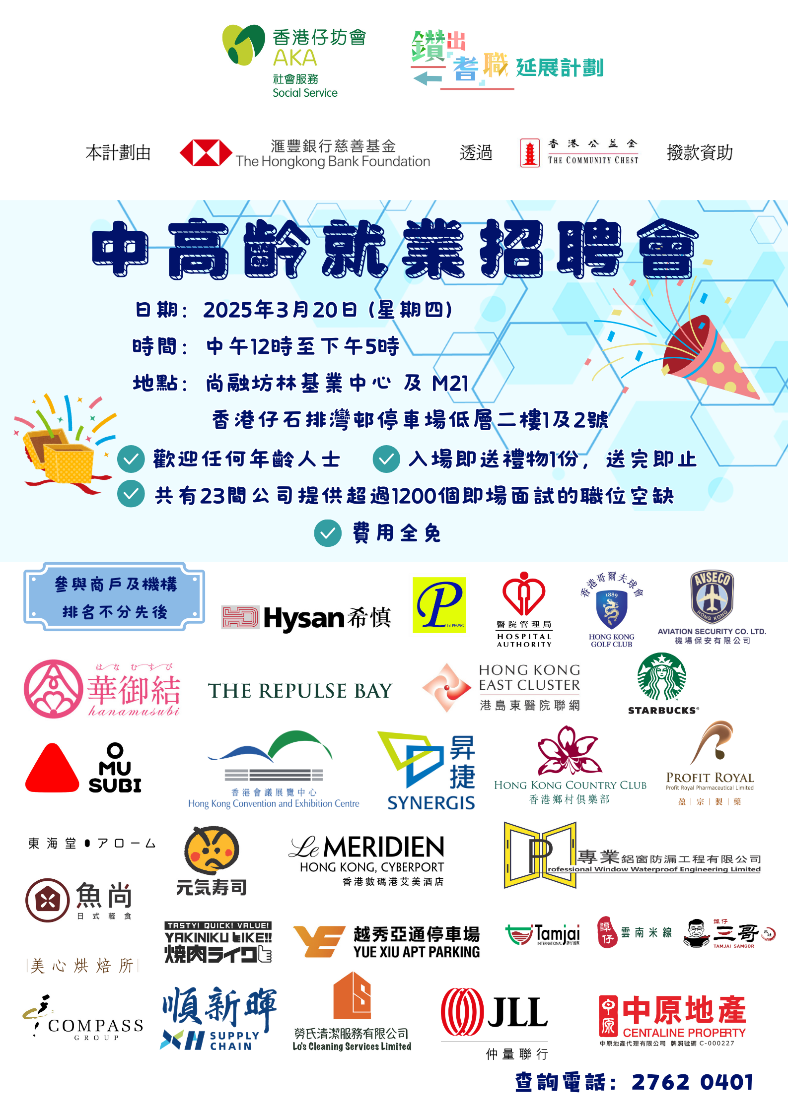鑽出耆職延展計劃將在3月20日於香港仔區舉行中高齡就業招聘會,場內有不同行業即場招聘,有飲物業管理、零售、飲食 […]