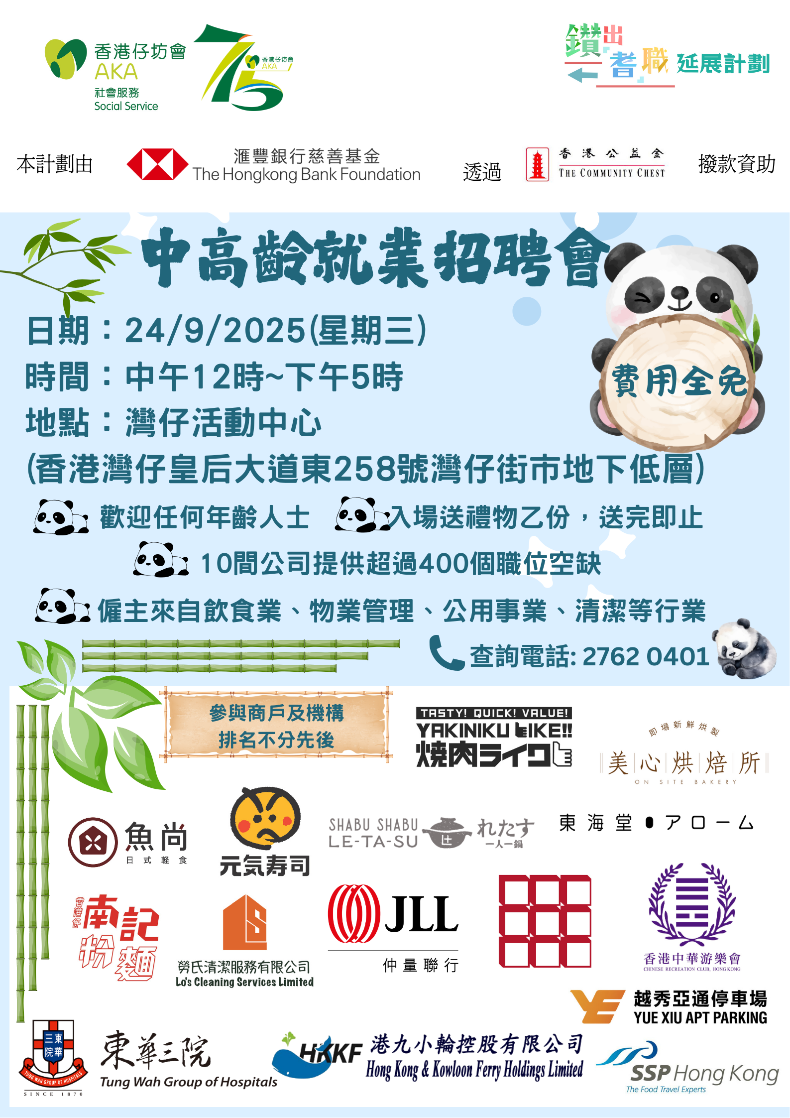 中高齡就業招聘會 日期:2025年9月24日(星期三) 時間:中午12點至下午5點 地點:灣仔活動中心(香港灣 […]