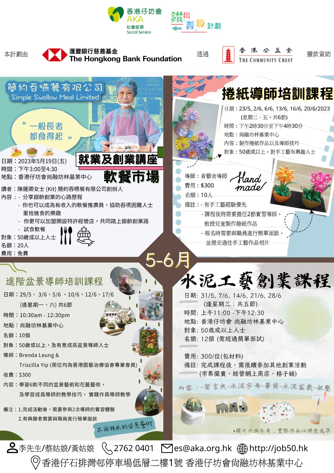 鑽出耆職計劃將在5~6月份舉行不同類型的活動/課程,有興趣的50+人士可以致電27620401查詢/報名 進階 […]