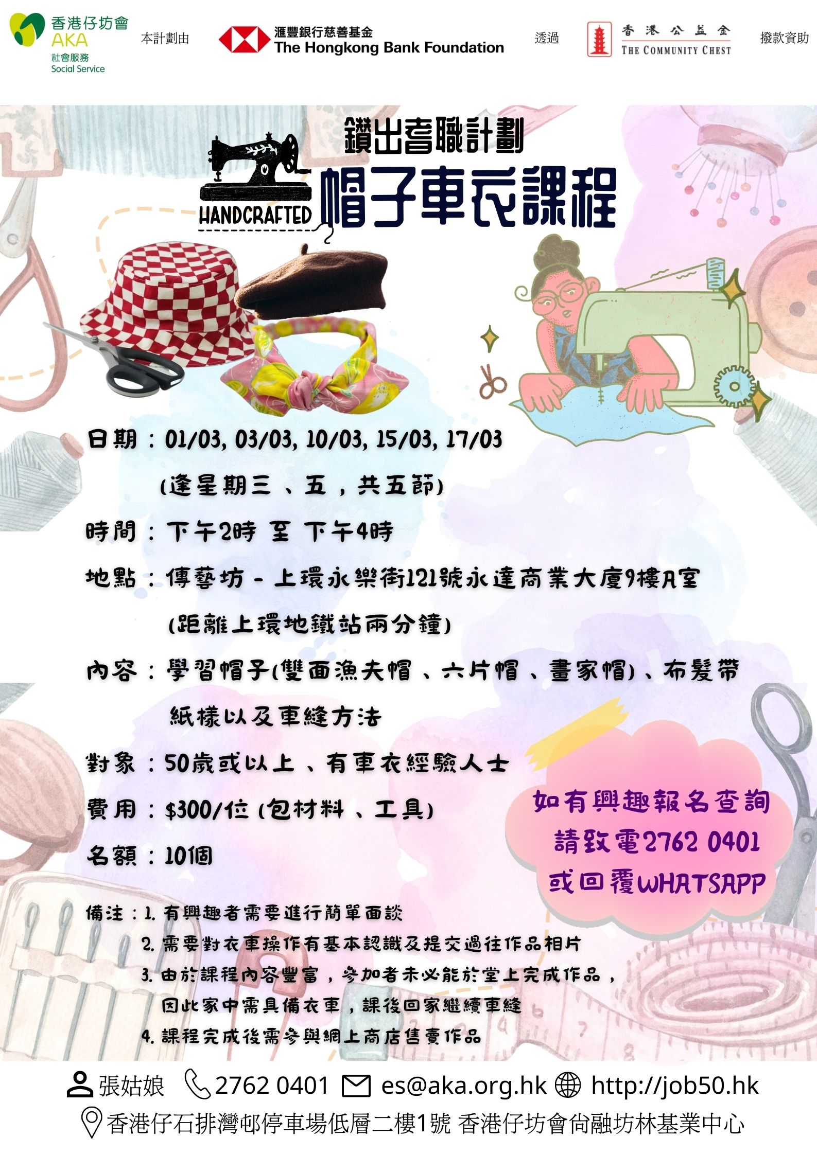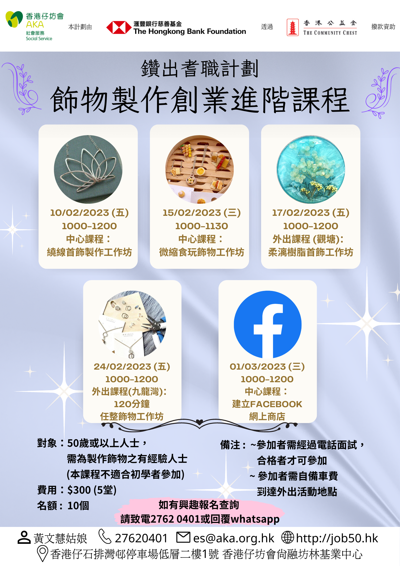 鑽出耆職計劃將舉行飾物製作創業進階課程,詳情如下: 10/02/2023五 1000-1200 中心課程:繞線 […]