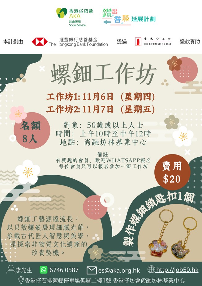 工作坊 一 日期 : 1月20日(星期一) 時間:下午9時至10時30分 地點:尚融坊林基業中心 […]