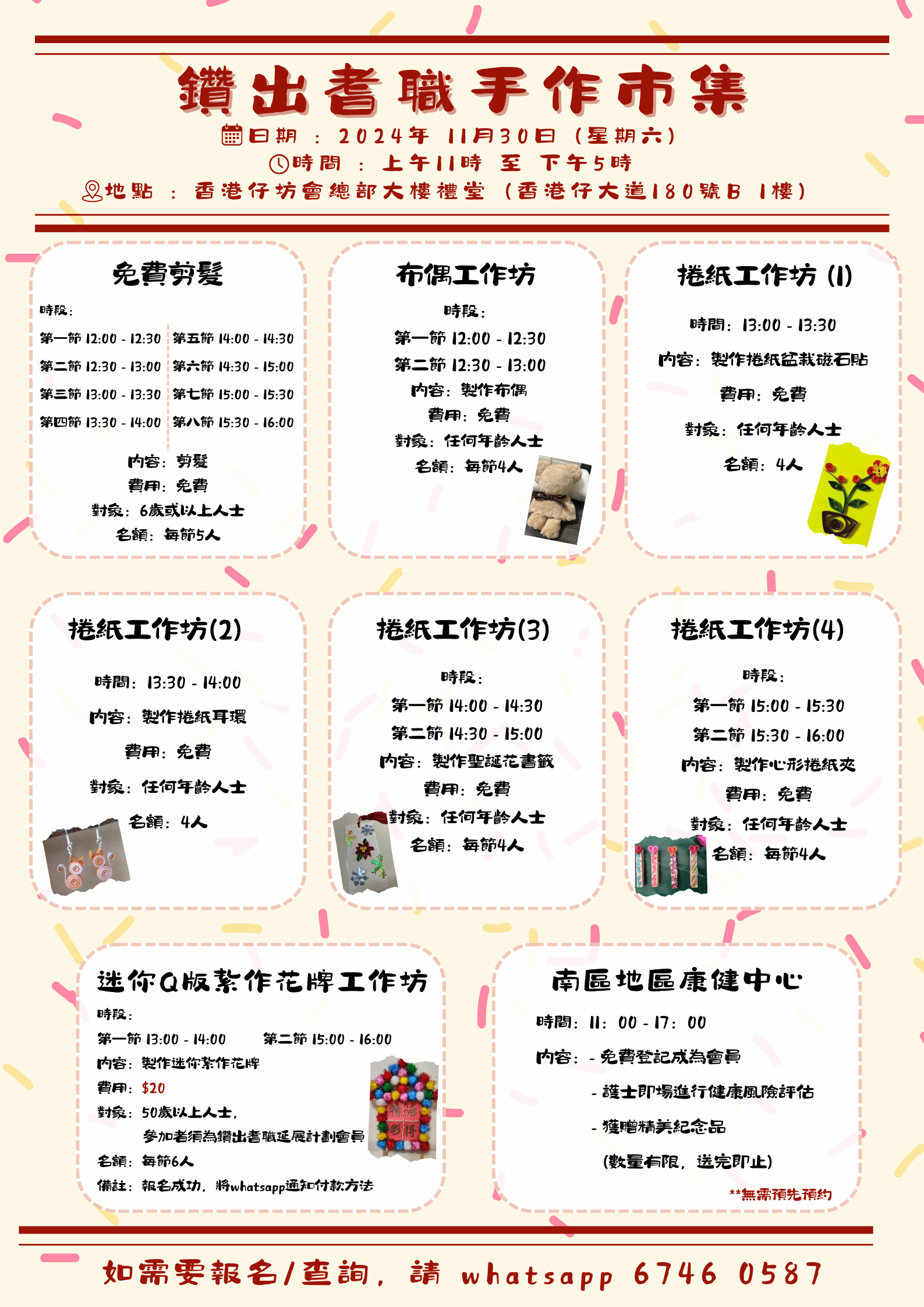 鑽出耆職手作市集 鑽出耆職延展計劃首個手作市集將在11月30日舉行,場内除設有20多個50+手作 […]
