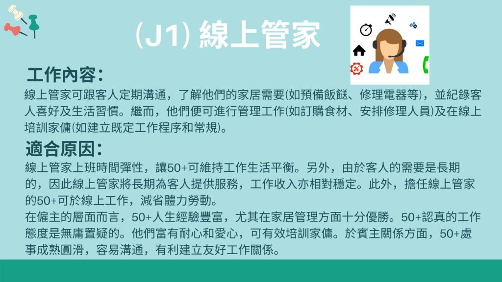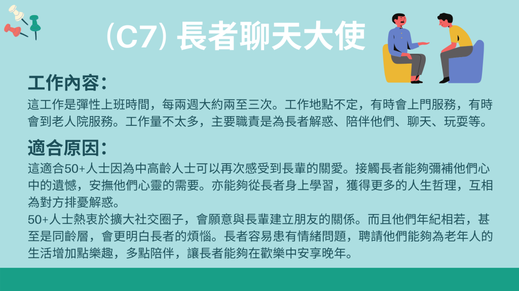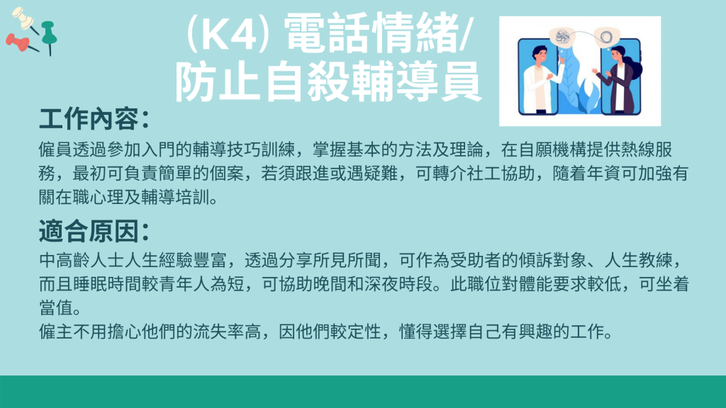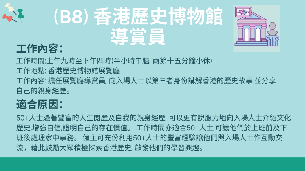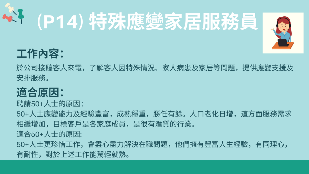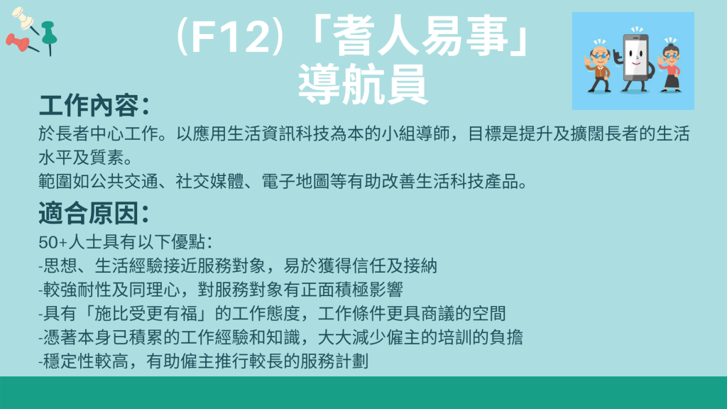 *註明︰適合原因為適合50+人士擔任的原因及適合僱主聘請50+人士的原因