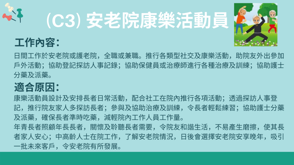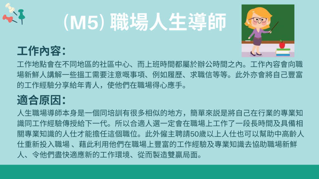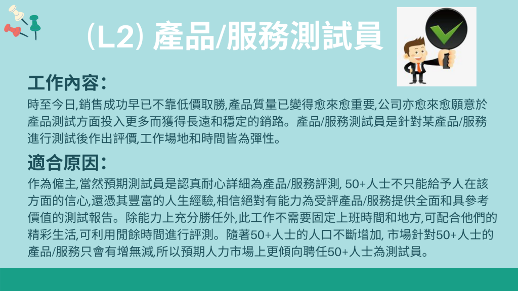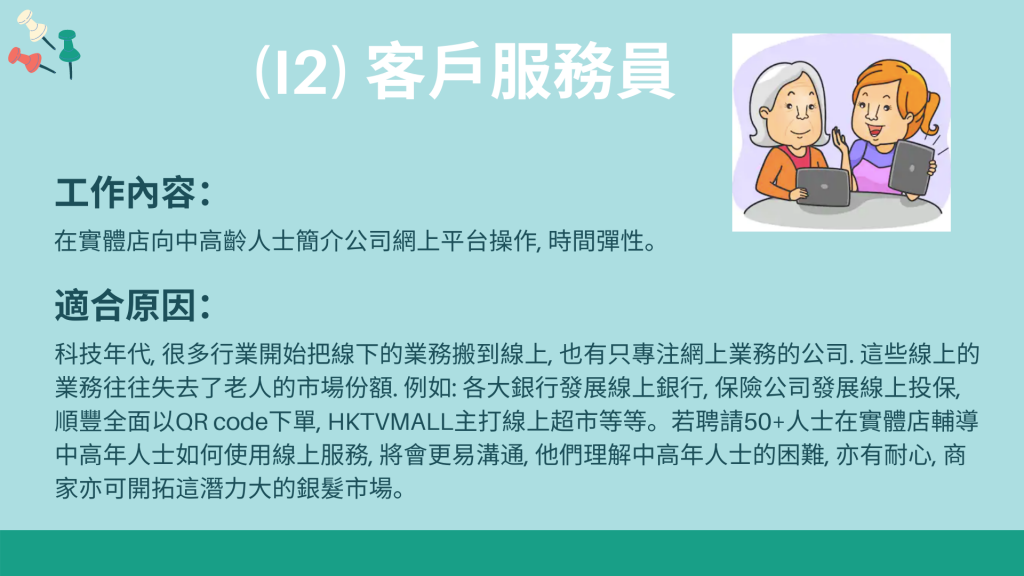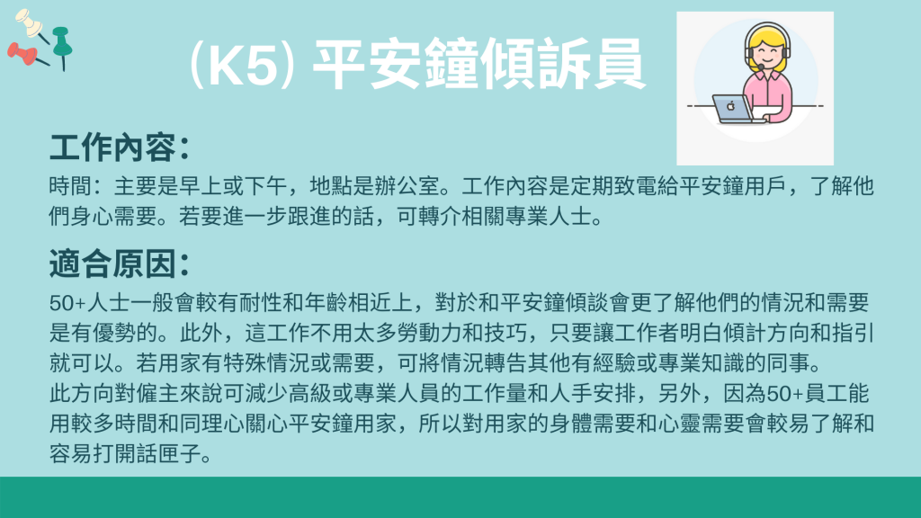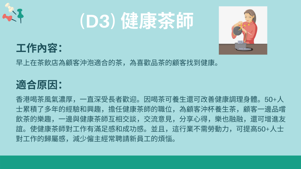 *註明︰適合原因為適合50+人士擔任的原因及適合僱主聘請50+人士的原因